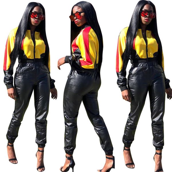 2019 Pu Leather Women Jacket Set Outfits Coat Leggings Tracksuit Crop Top Pants Jogging Suit Sportswear Sweatsuit Wholesale 222 From Mara 1 18 5