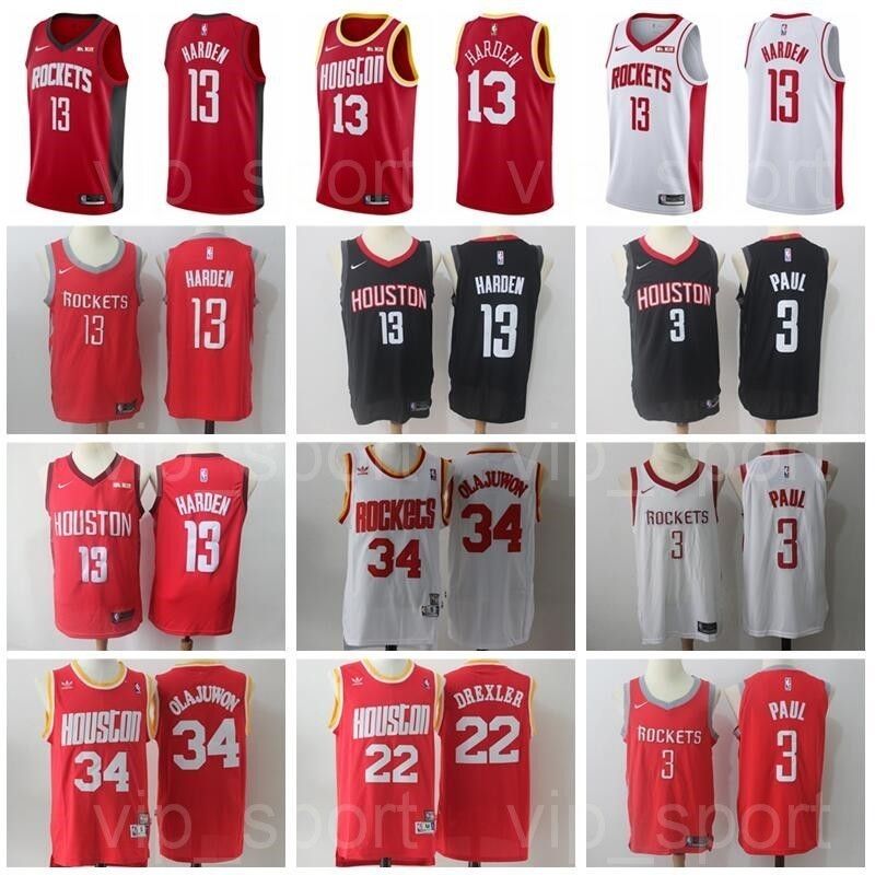 New Houston Basketball Rockets James Harden Jersey 13 Chris Paul 3 Clyde Drexler 22 Hakeem Olajuwon 34 Edition Earned City Men Classic Red